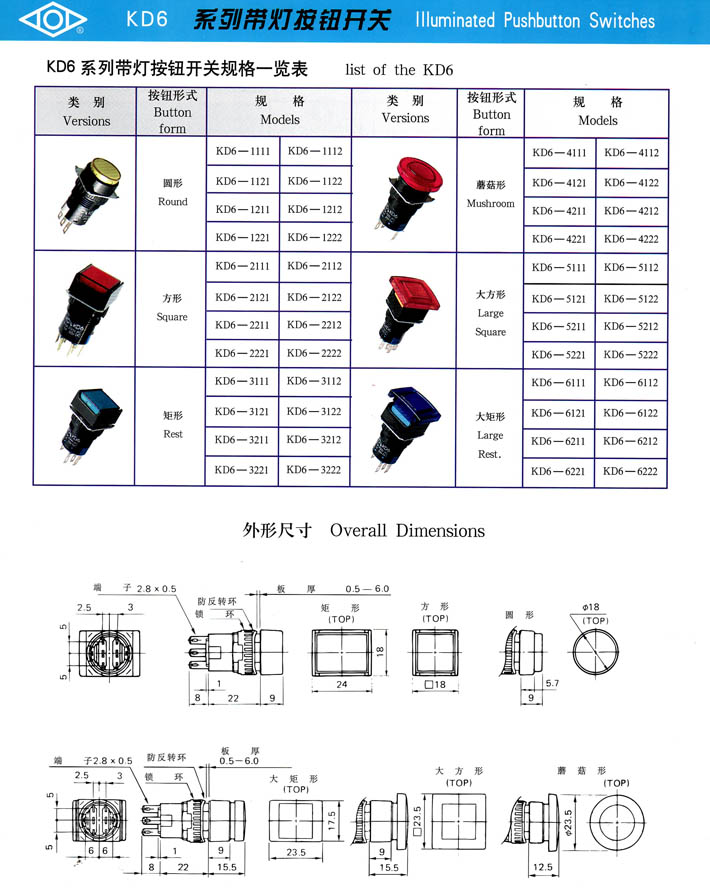 產(chǎn)品型號:KD6系列帶燈按鈕開關(guān)
